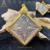 Còn mặt sau là Yant Nang Jan – yant đặc trưng của LP Hong kèm theo bài katha của Luang Pu Hong được dập bao quanh viền ngoài của mặt sau lá phép.
